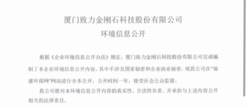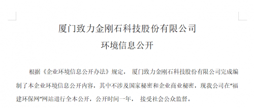 根据《企业环境信息公开办法》规定, 厦门致力金刚石科技股份有限公司完成编 制了本企业环境信息公